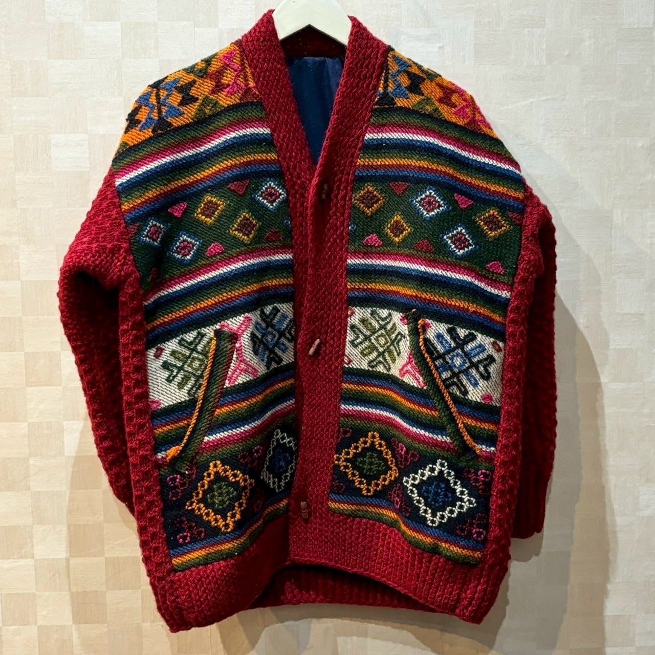 中南米(グアテマラ/メキシコ/ペルー周辺)系のハンドメイド民族柄カーディガン